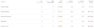 Pages showing decline will display negative percentages in red, these are your priority keywords to investigate.